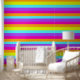 Rosa, gelbe, Lila und rote Rainbow Streifen gemusterte Tapete.