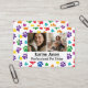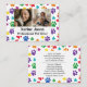 Establish a professional and friendly image for your pet care business with this vibrant, customizable business card. Designed specifically for pet sitters and dog walkers, it features a playful rainbow pattern of watercolor paw prints and hearts that instantly communicates your love for animals. The front includes space for personalized photos and your name, while the back provides a clean layout for your contact details and service list, ensuring potential clients have everything they need to reach out.