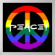Ein Regenbogenfriedenssymbol mit einem Ausruf der Ruhe!