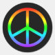 Schwarzer Aufkleber mit Regenbogenfriedzeichen.