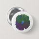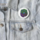 Dieser grungy Knopf zeigt ein Foto einer Petunia-Blume, die manipuliert wurde, um die Mitte der Blume blau zu machen. Die Erholung der Blume ist lila, grün und blau gehalten, was ihr das Aussehen einer grungenhaften Regenbogen-Blume verleiht.
