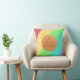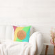 Viereckiges, buntes Kissen mit dem Degona-Bonbons-Dreieck auf dem Hintergrund des Regenbogens