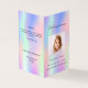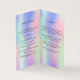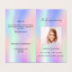 Ein elegantes 4-seitiges Programm. Ein mädchenhafter Regenbogen, holografischer Hintergrund in Rosa, lila, Blau und Minzgrün. Personalisieren und fügen Sie ein Foto, einen Namen, Daten und Ihren Text.