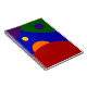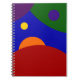 In dem Moment, in dem ich darüber nachdachte, den mittleren Teil dieses abstrakten Designs blau zu machen, sah mein Geek Geist die regenbogenfarbenen Kreise als eine Reihe von Planeten. Ein Teil eines großen roten Kreises füllt das links Drittel des Rahmens. Hinter ihm hervorzugucken ist fast die Hälfte eines kleineren orangefarbenen Kreises. Ein kleiner gelber Punkt befindet sich in der Nähe des mittelblauen Hintergrunds. Ein Teil eines violetten Planeten kurbelt sich durch die obere rechte Ecke des Bildes und überlagert einen Teil eines größeren grünen Kreises unten rechts. Ein kleiner indigener Planet liegt auf dem Grün wie ein kleiner Mond. Digitales 9000 x 6000 Pixel Bild. Copyright ©2011 Claire E. Skinner, Alle Rechte vorbehalten.
