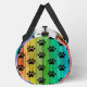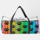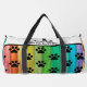 This playful Gear bag features an eye-catching design of black paw prints layered over a vibrant rainbow spectrum, resembling colorful wooden planks. It's a fun Kit bag and an ideal Weekender for animal lovers' adventures.