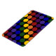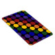 Die Reihen der regenbogenfarbenen Polka-Punkte decken einen schwarzen Hintergrund ab. Die Offsetreihen bilden Diagonalen jeder Farbe: violett, indigo, blau, grün, gelb, orange und rot. Digitales Bild. Copyright © 2011 Claire E. Skinner. Alle Rechte vorbehalten.