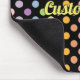 Rainbow-Polka-Punkte. Nahtloses Muster. Benutzerdefinierte Hintergrundfarbe. Eigener Text.