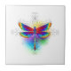 Hell, Regenbogen, polygonale Libelle auf weißem Hintergrund, mit Aquarell bemalt.