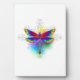 Hell, Regenbogen, polygonale Libelle auf weißem Hintergrund, mit Aquarell bemalt.