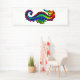 Künstlich gezeichnet, hell, Regenbogen, polygonales Seepferd auf weißem Hintergrund. Helles Tattoo.