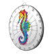 Künstlich gezeichnet, hell, Regenbogen, polygonales Seepferd auf weißem Hintergrund. Helles Tattoo.