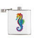 Künstlich gezeichnet, hell, Regenbogen, polygonales Seepferd auf weißem Hintergrund. Helles Tattoo.