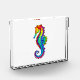Künstlich gezeichnet, hell, Regenbogen, polygonales Seepferd auf weißem Hintergrund. Helles Tattoo.