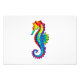 Künstlich gezeichnet, hell, Regenbogen, polygonales Seepferd auf weißem Hintergrund. Helles Tattoo.