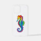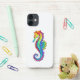 Künstlich gezeichnet, hell, Regenbogen, polygonales Seepferd auf weißem Hintergrund. Helles Tattoo.