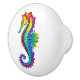 Künstlich gezeichnet, hell, Regenbogen, polygonales Seepferd auf weißem Hintergrund. Helles Tattoo.
