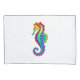 Künstlich gezeichnet, hell, Regenbogen, polygonales Seepferd auf weißem Hintergrund. Helles Tattoo.