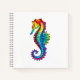 Künstlich gezeichnet, hell, Regenbogen, polygonales Seepferd auf weißem Hintergrund. Helles Tattoo.