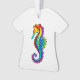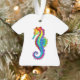Künstlich gezeichnet, hell, Regenbogen, polygonales Seepferd auf weißem Hintergrund. Helles Tattoo.