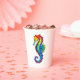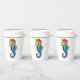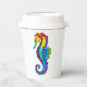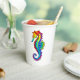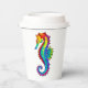 Künstlich gezeichnet, hell, Regenbogen, polygonales Seepferd auf weißem Hintergrund. Helles Tattoo.