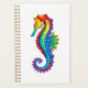 Künstlich gezeichnet, hell, Regenbogen, polygonales Seepferd auf weißem Hintergrund. Helles Tattoo.