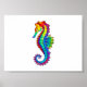 Künstlich gezeichnet, hell, Regenbogen, polygonales Seepferd auf weißem Hintergrund. Helles Tattoo.