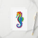 Künstlich gezeichnet, hell, Regenbogen, polygonales Seepferd auf weißem Hintergrund. Helles Tattoo.