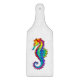 Künstlich gezeichnet, hell, Regenbogen, polygonales Seepferd auf weißem Hintergrund. Helles Tattoo.