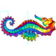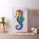 Künstlich gezeichnet, hell, Regenbogen, polygonales Seepferd auf weißem Hintergrund. Helles Tattoo.