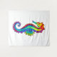 Künstlich gezeichnet, hell, Regenbogen, polygonales Seepferd auf weißem Hintergrund. Helles Tattoo.