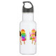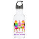 Personalisierte Wasserflasche für Kinder - cooles Zubehör für die Rückfahrt zur Schule, Sporttaschen usw. Das Design hat bunte Aquarellbläschen und schokoladengetränkte Eislollen auf Stöcken in einer lebendigen Regenbogenfarbenpalette. Die Vorlage ist für Sie bereit, Ihren eigenen Text, wie Ihren Namen und Slogan, in rosa und lila Retro-Typografie hinzuzufügen.
