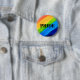 Rainbow Pride Button. Dieser Knopf ist mit Aquarellstreifen in Regenbogenfarben dekoriert und das Wort "PRIDE" Der Text ist eine Vorlage, damit Sie ihn ändern können, wenn Sie möchten. Original Wasserfarbe © Michele Davies.