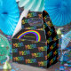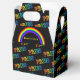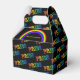 Dieses Gefälligkeitsfeld hat schwarzen Hintergrund mit dem Wort "PRIDE" in den Regenbogenfarben und bildet ein Muster. Auf der Vorderseite des Kastens befindet sich eine schwarze Tafel mit Regenbogen und einem Bereich, in dem Text nach Belieben angezeigt werden kann.