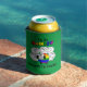 Dieser Regenbogen-Pride Can Cooler hat eine Herde weißer Schafe. Vor der Herde ist ein einzelnes Schaf mit den Farben der LGBTQ-Flagge. Der Text lautet: "Ich bin das RAINBOW-Schaf der Familie." Auf der Rückseite des Can Cooler befindet sich ein Bild des Regenbogenschafs und ein für den eigenen Text.