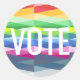 Ein Kaleidoskop von Regenbogenfarben, das in einem Dreiecksband einen Prismenähnlichen Effekt bildet, wobei das Wort VOTE herausgeschnitten wird; der Text kann angepasst werden. Kontaktieren Sie mich mit Fragen oder Wünschen.