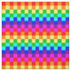 Quadrate verschiedener Farben in einem Regenbogen angeordnet.