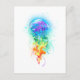 Große, rieszierende, künstlerisch gezeichnet, helle Quallen mit langen Tentakeln auf Weiß, mit farbenfrohen Aquarellbildern überstrichen. Rainbow-Quallen