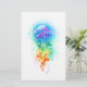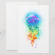Große, rieszierende, künstlerisch gezeichnet, helle Quallen mit langen Tentakeln auf Weiß, mit farbenfrohen Aquarellbildern überstrichen. Rainbow-Quallen