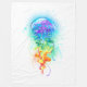 Große, rieszierende, künstlerisch gezeichnet, helle Quallen mit langen Tentakeln auf Weiß, mit farbenfrohen Aquarellbildern überstrichen. Rainbow-Quallen