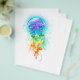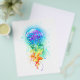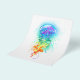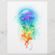 Große, rieszierende, künstlerisch gezeichnet, helle Quallen mit langen Tentakeln auf Weiß, mit farbenfrohen Aquarellbildern überstrichen. Rainbow-Quallen
