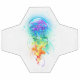 Große, rieszierende, künstlerisch gezeichnet, helle Quallen mit langen Tentakeln auf Weiß, mit farbenfrohen Aquarellbildern überstrichen. Rainbow-Quallen