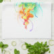 Große, rieszierende, künstlerisch gezeichnet, helle Quallen mit langen Tentakeln auf Weiß, mit farbenfrohen Aquarellbildern überstrichen. Rainbow-Quallen