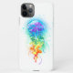 Große, rieszierende, künstlerisch gezeichnet, helle Quallen mit langen Tentakeln auf Weiß, mit farbenfrohen Aquarellbildern überstrichen. Rainbow-Quallen