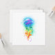Große, rieszierende, künstlerisch gezeichnet, helle Quallen mit langen Tentakeln auf Weiß, mit farbenfrohen Aquarellbildern überstrichen. Rainbow-Quallen