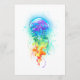 Große, rieszierende, künstlerisch gezeichnet, helle Quallen mit langen Tentakeln auf Weiß, mit farbenfrohen Aquarellbildern überstrichen. Rainbow-Quallen