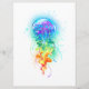 Große, rieszierende, künstlerisch gezeichnet, helle Quallen mit langen Tentakeln auf Weiß, mit farbenfrohen Aquarellbildern überstrichen. Rainbow-Quallen