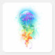 Große, rieszierende, künstlerisch gezeichnet, helle Quallen mit langen Tentakeln auf Weiß, mit farbenfrohen Aquarellbildern überstrichen. Rainbow-Quallen