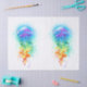 Große, rieszierende, künstlerisch gezeichnet, helle Quallen, mit langen Tentakeln auf Weiß, mit buntem Aquarell-Hintergrund überstrichen. Rainbow-Quallen