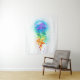 Große, rieszierende, künstlerisch gezeichnet, helle Quallen mit langen Tentakeln auf Weiß, mit farbenfrohen Aquarellbildern überstrichen. Rainbow-Quallen