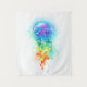 Große, rieszierende, künstlerisch gezeichnet, helle Quallen mit langen Tentakeln auf Weiß, mit farbenfrohen Aquarellbildern überstrichen. Rainbow-Quallen